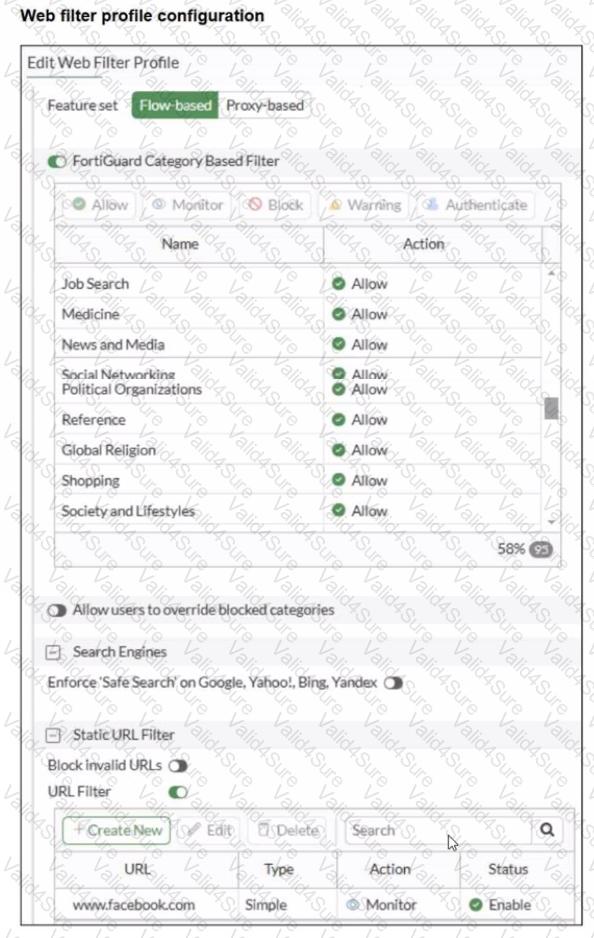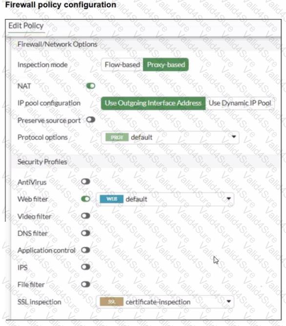 A web filter profile configuration and firewall policy configuration are shown.