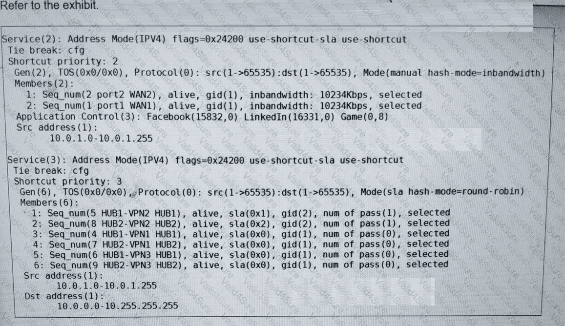 (Refer to the exhibit. The administrator configured two SD-WAN rules to load balance the traffic.