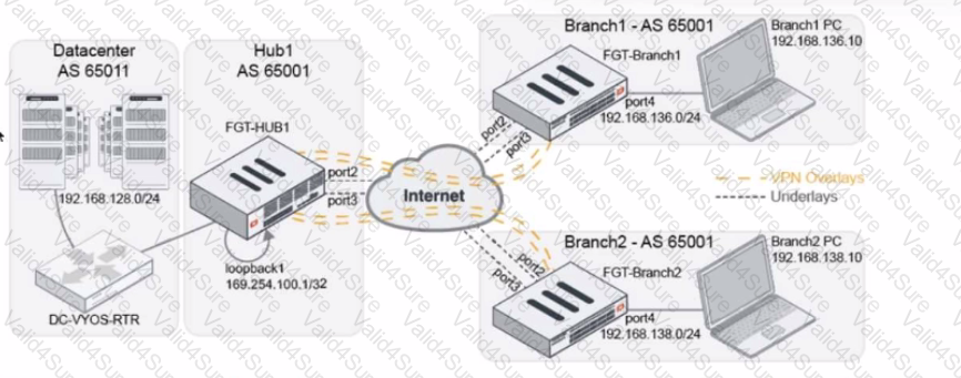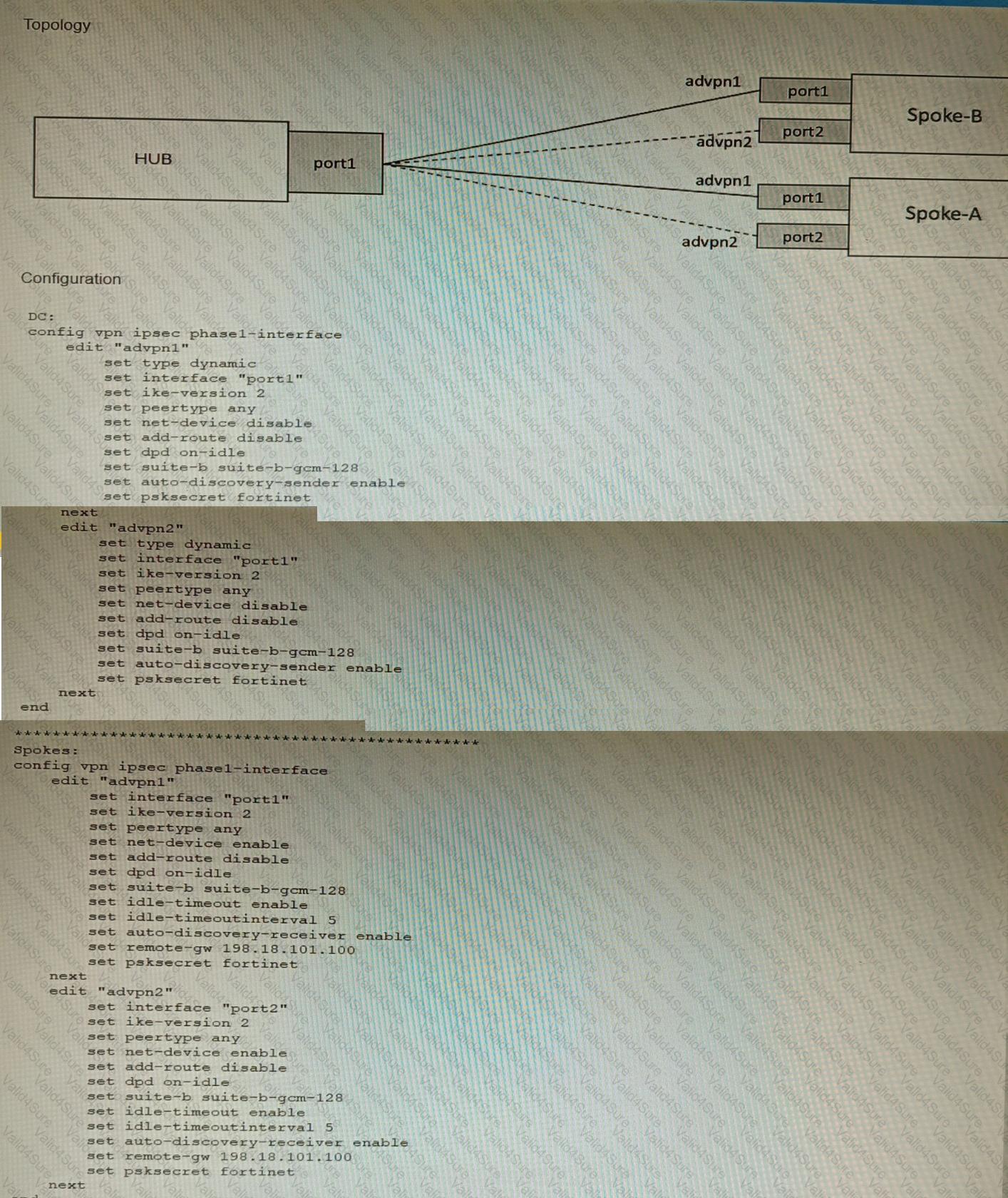 A customer asks you to configure ADVPN via two internet underlays. The requirement is that you use one interface with a single IP address on DC FortiGate.