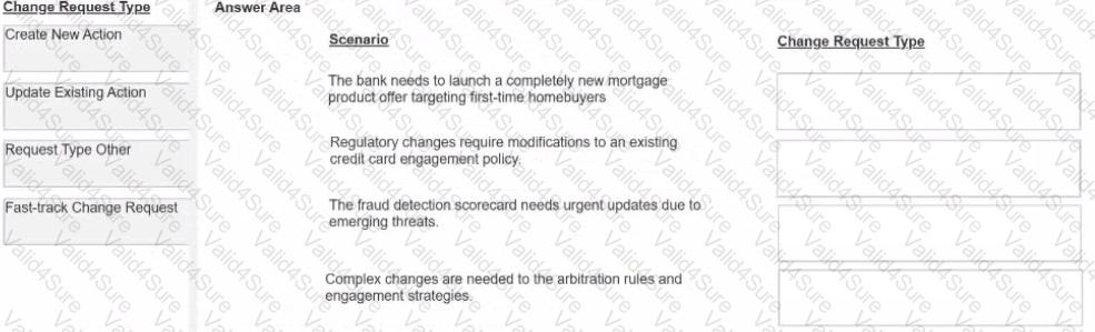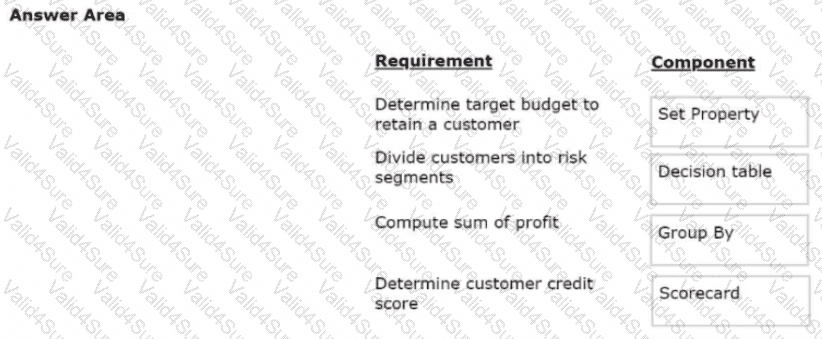 You are a deaccessioning architect on a next-best-action project and are responsible for designing and implementing decision strategies. Select each component on the left and drag it to the correct requirement on the right.