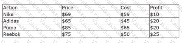 The following decision strategy outputs the most profitable shoe a retailer can sell. The profit is the selling Prices of the shoe, minus the Cost to acquire the shoe.