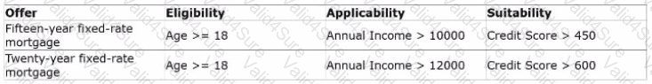 U+- Bank, a retail bank, has recently Implemented a project in which qualified customers see mortgage offers when they log in to the web self-service portal.