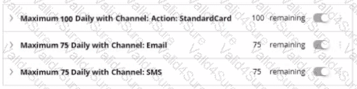 A financial services company has implemented always-on outbound campaigns for three credit card offers: Standard card. Rewards card, and Rewards Plus card. The marketing team observes that customers who are qualified for multiple actions receive different numbers of offers, depending on the configuration of the volume constraint mode. To optimize customer engagement, the system administrator must choose between constraint modes.