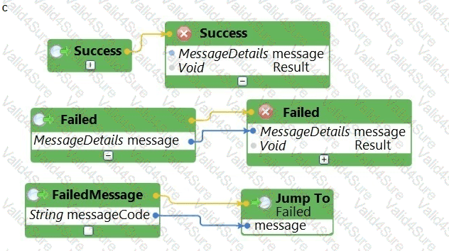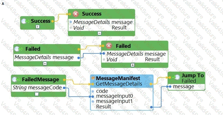 The business requirements states that the login automation creates a Success or Failed response when attempting to log in to the finance application. If a failure occurs, the automation should pass a message code with the Message Manifest before exiting the automation.