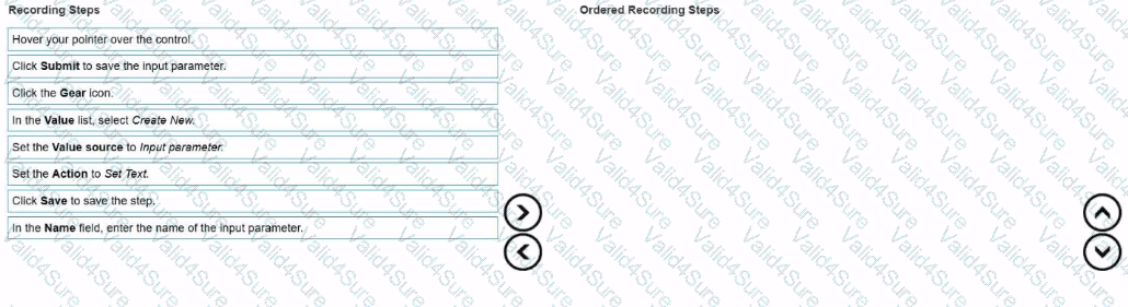 As pan of the initial development of a robotic project, you are using targeted step creation lo interrogate a text input control. The system invokes the automation from a separate automation, and the value of the text input uses a value that is passed into the recorded automation.