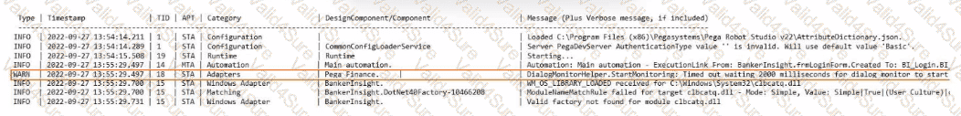 A developer working on an automation has added a diagnostic log component to check the following log file for information on inconsistent behavior.
