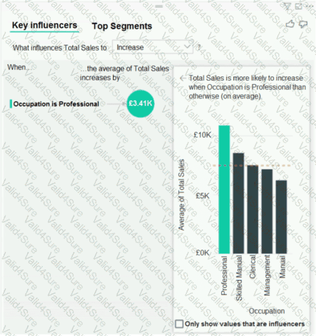 You need to create a key influencers visualization as shown in the exhibit. (Click the Exhibit tab.)