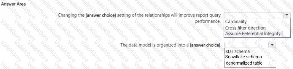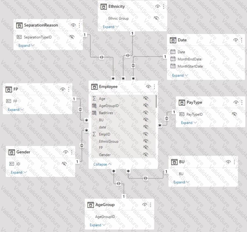 You have a semantic model in import mode that contains the model shown in the following exhibit.