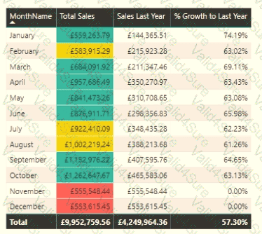 The indicator color for Total Sales will be based on % Growth to Last Year.