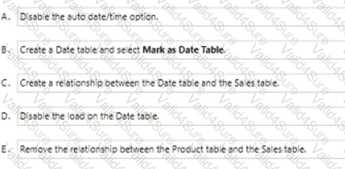 You need to design the data model to meet the report requirements. What should you do m Power Bl Desktop?