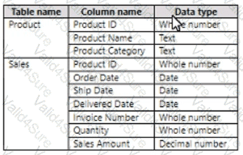 You have a Power BI data model that analyzes product sales ever time. The data model contains the following tables.