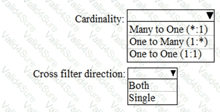 How should you configure the relationships? To answer, select the appropriate options in the answer area.