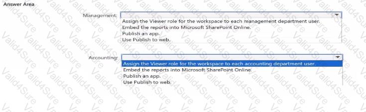 You need to make content available to the management department and the accounting department at your company. The solution must meet the following requirements: