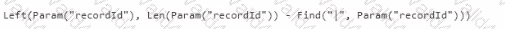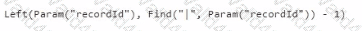 The app must be able to receive two contextual parameters by passing a concatenated string. The string must use the pipe (|) symbol with the recordld parameter.