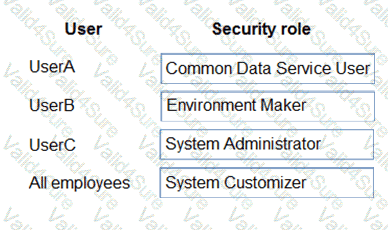 Which security roles should you use? To answer, drag the appropriate security roles to the correct users. Each security role may be used once, more than once, or not at all. You may need to drag the split bar between panes or scroll to view content.