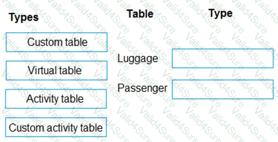 What should you recommend? To answer, drag the appropriate types to the correct tables. Each type may be used once, more than once, or not at all. You may need to drag the split bar between panes or scroll to view content.