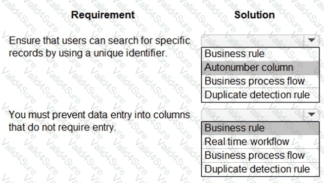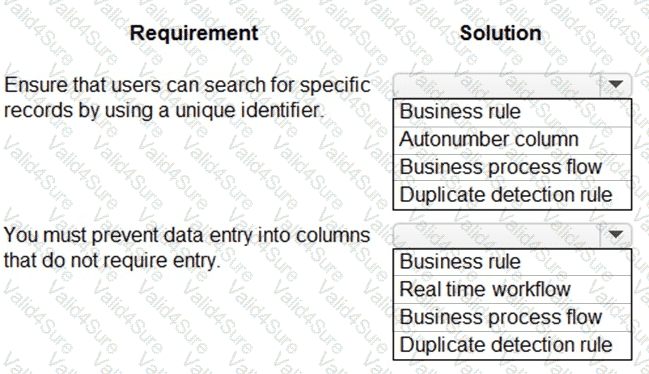 A company uses Microsoft Dataverse to store patient Information-Patient information is managed using Dataverse forms. The company must enforce the following rules to manage data quality: