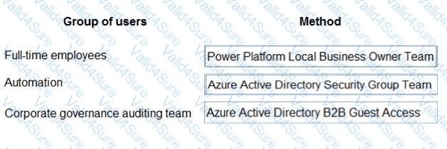 What should you recommend? To answer, drag the appropriate methods to the correct groups of users. Each method may be used once, more than once, or not at all. You may need to drag the split bar between panes or scroll to view content.