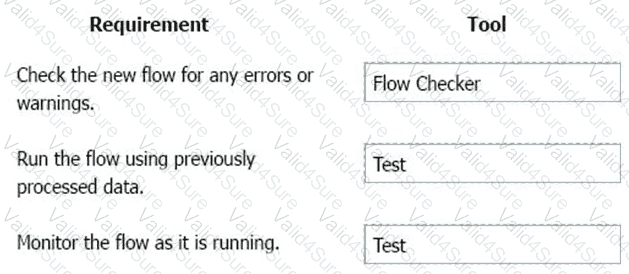 Which flow editing utilities should you use? To answer, drag the appropriate tools to the correct requirements. Each tool may be used once, more than once, or not at all You may need to drag the split bar between panes or scroll to view content.