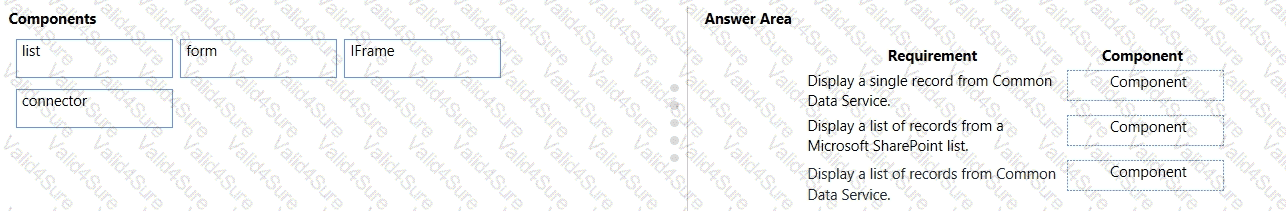 Which components should you use? To answer, drag the appropriate components to the correct requirements. Each component may be used once, more than once, or not at all. You may need to drag the split bar between panes or scroll to view content.