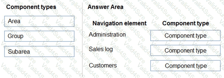 Which sitemap component types should you use? To answer, drag the appropriate component types to the correct navigation elements. Each component type may be used once, more than once, or not at all. You may need to drag the split bar between panes or scroll to view content.