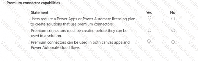 A company plans to use Microsoft Power Platform connectors to automate an existing business process that includes Power Automate cloud flows and canvas apps.