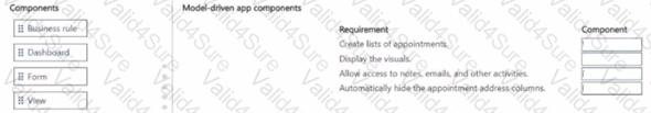 You plan to implement a model-driven app for a company. Employees will use the app to manage appointments with customers. The app must meet the following requirements: