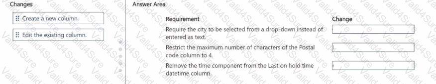 Which changes should you make to meet each requirement? To answer, drag the appropriate changes to the correct requirements. Each change may be used once, more than once, or not at all. You may need to drag the split bar between panes or scroll to view content.