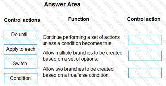 Which control action should you use? To answer, drag the appropriate control actions to the correct functions. Each control action may be used once, more than once, or not at all. You may need to drag the split bar between panes or scroll to view content.