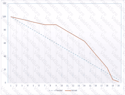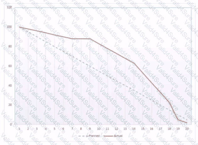 An agile team is conducting a sprint retrospective and wants to focus on the practices that allowed them to recover after a bad start Please click on the area of the burndown chart that the team should focus on.