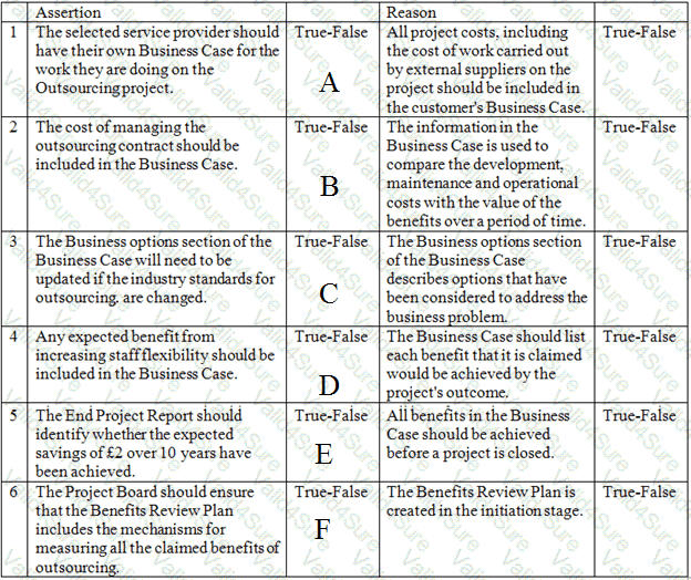 Lines 1 to 6 in the table below consist of an assertion statement and a reason statement. For each line identify the appropriate option, from options A to E, that applies. Each option can be used once, more than once or not at all.