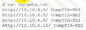 During an engagement, a penetration tester receives a list of target systems and wants to enumerate them for possible vulnerabilities. The tester finds the following script on the internet: