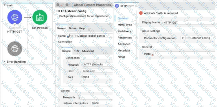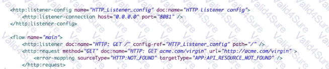 The Mule application implements a RESTAPI that accepts GET requests from web clients on the URLs: http://acme com/order/status and http:Vacme.com/customer/status.