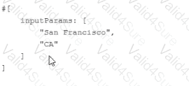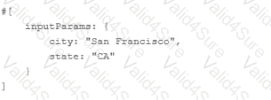 What expression correctly specifies inputparameters to pass the city and state values to the SQL query?