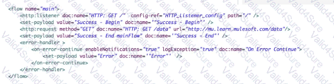 Refer to the exhibits. The webClient flow sends requests to the mockServer Row's HTTP Listener.