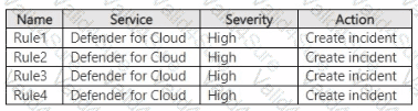 User1 performs an action that matches Rule1, Rule2, Rule3, and Rule4. How many incidents will be created in WS1?