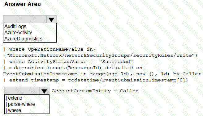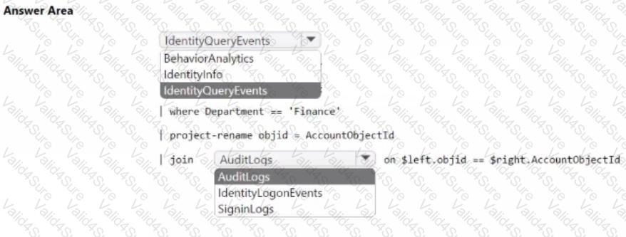 How should you complete the query? To answer, select the appropriate options in the answer area. NOTE: Each correct selection is worth one point.