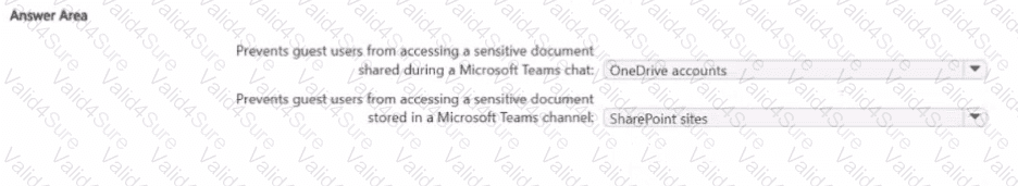 • Prevents guest users from accessing a sensitive document stored in a Microsoft Team? channel