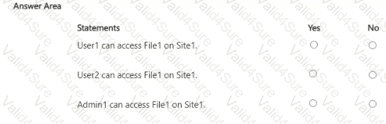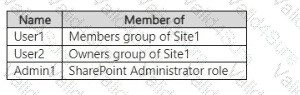 You have a Microsoft 365 E5 subscription that contains a Microsoft SharePoint Online site named Site1 and the users shown in the following table.
