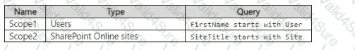 You have a Microsoft 365 E5 subscription that contains the adaptive scopes shown in the following table.