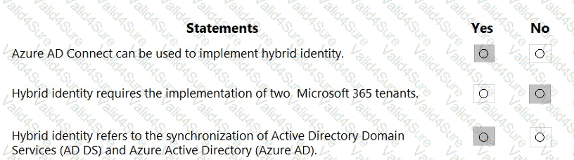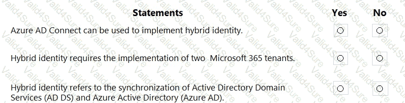 For each of the following statements, select Yes if the statement is true. Otherwise, select No.
