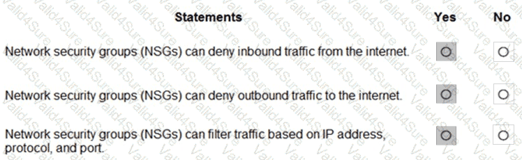 For each of the following statements, select Yes if the statement is true. Otherwise, select No.