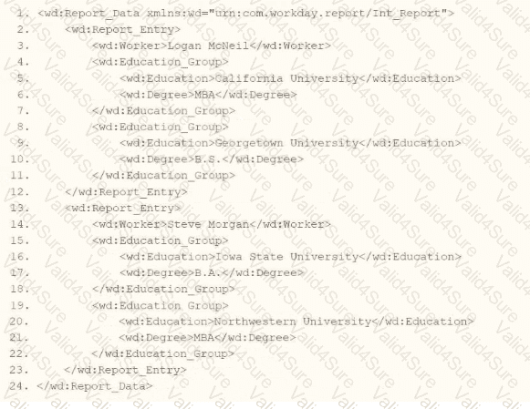 This approach ensures the XSLT transformation aligns with Workday’s XML structure and integration requirements for processing education data in a report output.