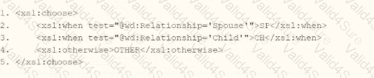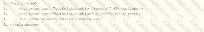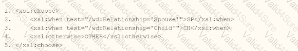 You are an integration developer and need to write XSLT to transform the output of an EIB which is using a web service enabled report to output worker data along with their dependents. You currently have a template which matches on wd:Dependents_Group to iterate over each dependent. Within the template which matches on wd:Dependents_Group you would like to output a relationship code by using an