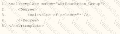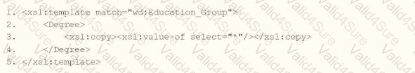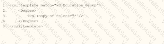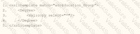 What is the XSLT syntax tor a template that matches on wd: Educationj3roup to produce the degree data in the above Transformed_Record example?