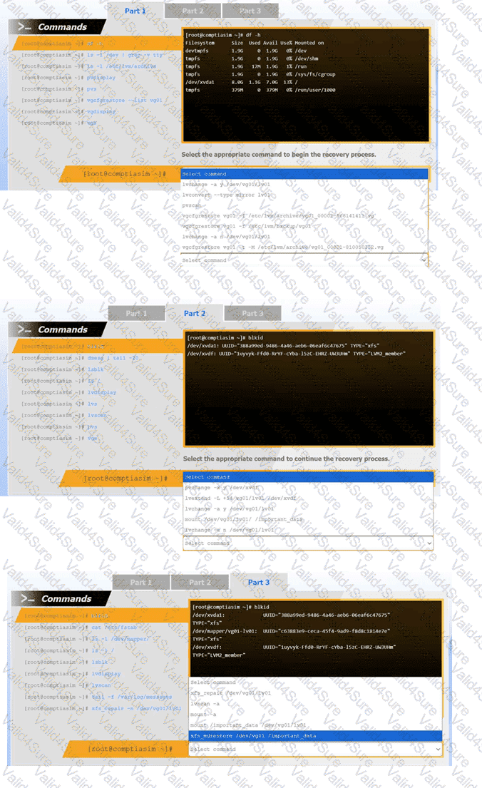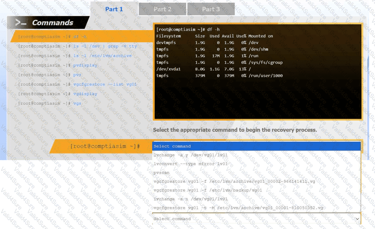 Review the output and select the appropriate command to begin the recovery process.