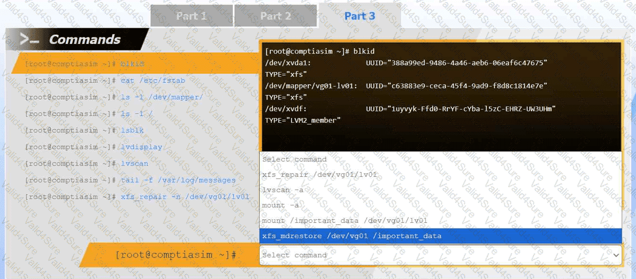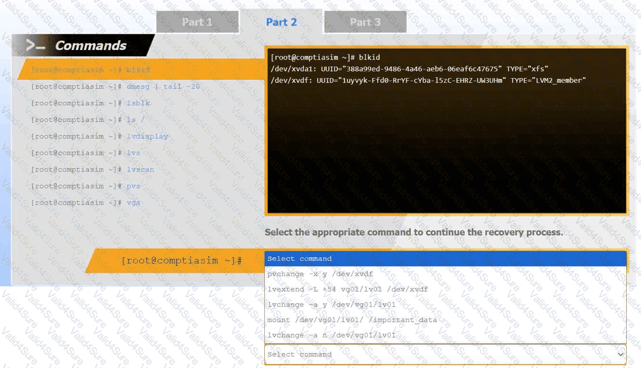 Review the output and select the appropriate command to complete the recovery process and access the underlying data.