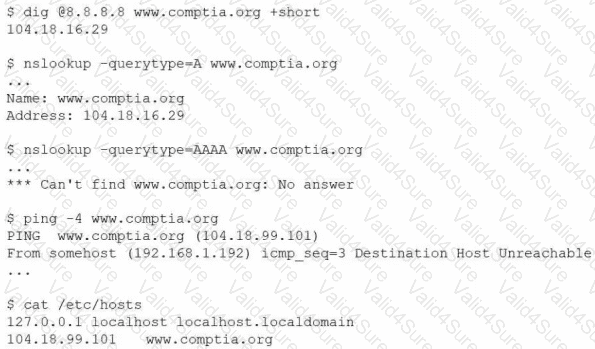 An administrator is investigating the reason a Linux workstation is not resolving the website http://www.comptia.org. The administrator executes some commands and receives the following output: